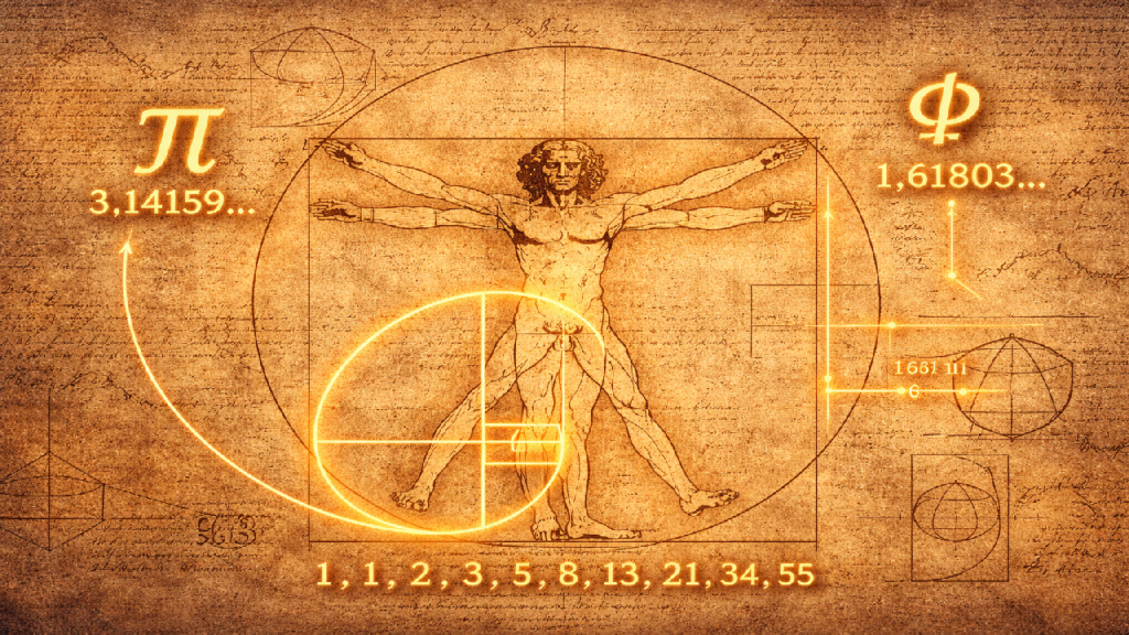 Die Beziehungen, die Menschen zwischen der Welt um sie herum und ihrem erfundenen Werkzeug der Zahlen fanden, waren zahlreich und grundlegend. Von den eigenen Körperteilen über Pflanzen, deren Samen und Erträge bis hin zu den Zyklen des Mondes und den Umläufen von Sonne und Planeten – all dies weckte in ihnen ein Gefühl von Verbundenheit und einen Sinn hinter dem Universum. Darüber hinaus erkannten sie, dass Geometrie und Zahlen keine getrennten Entitäten sind; sie sind stark miteinander verbunden und verflochten. Können wir an eine fünfeckige Blume denken, ohne im Hinterkopf die Zahl 5 aufzurufen? Die Fibonacci-Folge ist ihrem Wesen nach rein numerisch; werden ihre Zahlen jedoch auf Dimensionen von Quadraten abgebildet, lässt sich eine wunderschöne Spirale nachzeichnen, die in der Natur häufig vorkommt. Fundamentale Konstanten wie π und der goldene Schnitt Φ sind unendliche Zahlen, die geometrische Formen und ihre Ausdehnungen bestimmen. Tatsächlich beruhen Formen und Gestalten, die uns Menschen ansprechen, in ihren Dimensionen und Proportionen fast immer auf magischen Zahlen oder fundamentalen Konstanten.